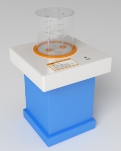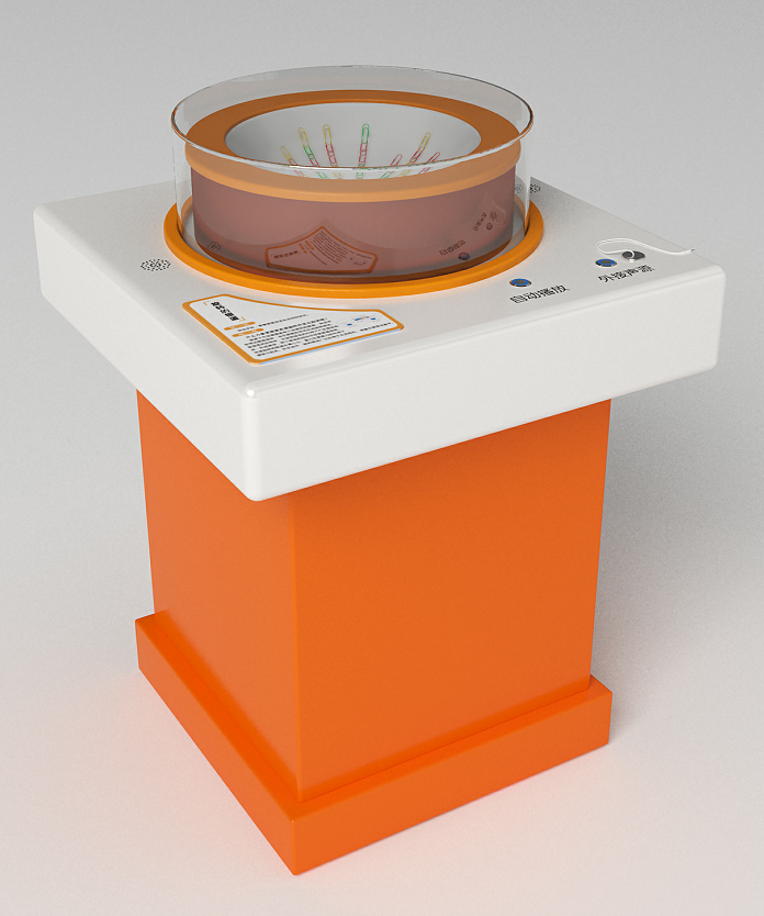 三、功能概述:本展品主要由三個可旋轉(zhuǎn)磁塊、一只金屬蛋、透明圓盤和手輪組成。三個磁塊在圓盤的下方互成120度夾角放置,為方便觀眾觀看,圓盤采用透明材料,金屬蛋放置在圓盤上方,為防止觀眾觸碰到展品,外部用有機玻璃罩罩住。觀眾轉(zhuǎn)動手輪,磁塊旋轉(zhuǎn)產(chǎn)生旋轉(zhuǎn)磁場。而金屬蛋是閉合的導(dǎo)體,線圈所形成的旋轉(zhuǎn)磁場會使金屬蛋中產(chǎn)生感生電流,并形成磁場,兩個磁場相互作用使銀蛋旋起來。于銀蛋的質(zhì)量分布不均勻,是偏心的,因此當銀蛋旋轉(zhuǎn)時,在離心力、重力以及摩擦力的作用下它便豎立了起來。
