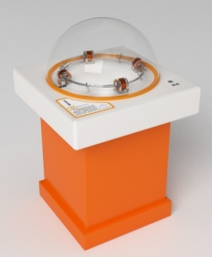 功能概述:展品由串在一起的兩個線圈、兩個帶磁鐵的單擺、擺動觸發(fā)裝置、通斷開關(guān)、防護罩等組成。