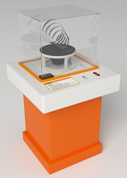 功能概述:展項由加速線圈、軌道、停球機構(gòu)、防護罩等構(gòu)成。觀眾按下“啟動”按鈕,停球機構(gòu)將金屬球釋放,通電后軌道內(nèi)金屬球會越轉(zhuǎn)越快。