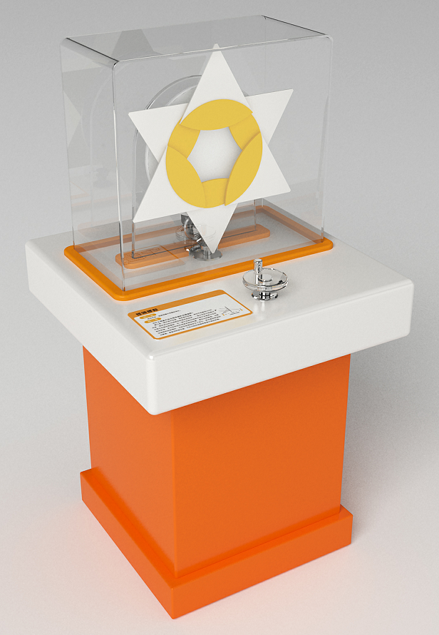 功能概述:展項(xiàng)由轉(zhuǎn)盤驅(qū)動機(jī)構(gòu)和心跳干涉圖案組合構(gòu)成,按下啟動按鈕,電機(jī)驅(qū)動光柵轉(zhuǎn)動,可看到莫爾條紋引起的視錯覺。
