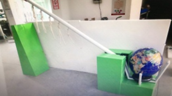 1.觀眾拉動杠桿設(shè)施上不同位置的拉環(huán),啟動杠桿,撬動杠桿另一端的地球模型;