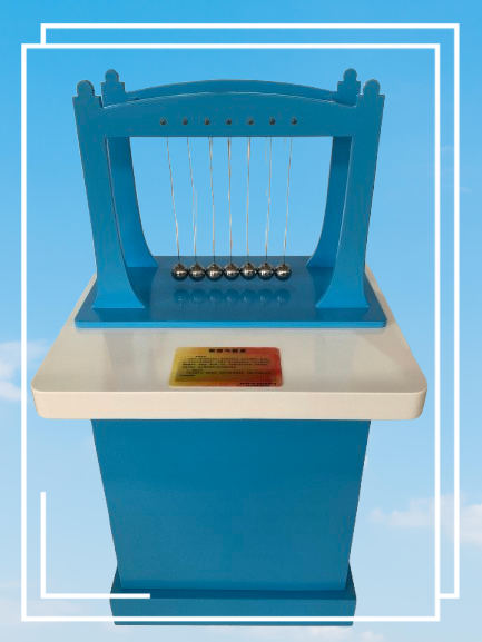 功能概述:本展項展示了形狀和質(zhì)量相同的演示球(重心在一條水平線上)碰撞時的動量守恒現(xiàn)象。參觀者可以像牛頓和伽利略那樣學(xué)習(xí)力學(xué)原理、重力以及運動定律。觀眾輕輕拉起一個球并放手,觀察其碰撞現(xiàn)象;再拉起兩個或多個小球進行碰撞,觀察現(xiàn)象。通過演示讓觀眾了解作用力與反作用力是相等且相對的這一原理。