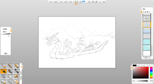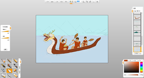 7.用馬克筆筆觸,選擇自己認為適當的顏色,為人物和龍舟涂上顏色。
