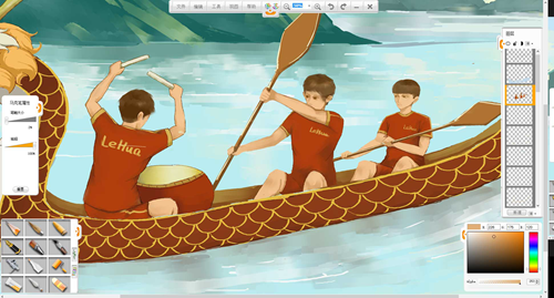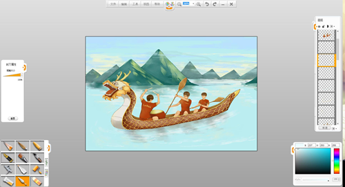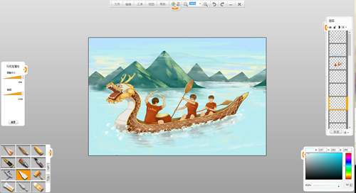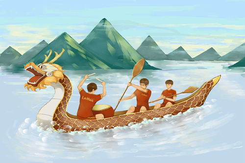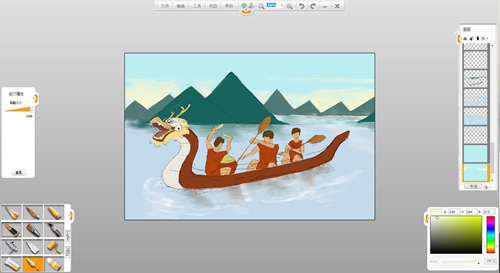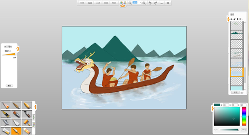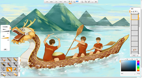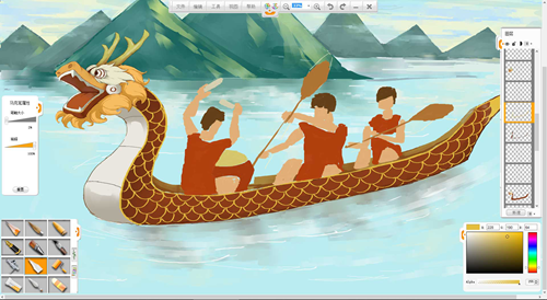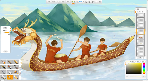 現在來創作一幅端午節劃龍舟的作品吧。