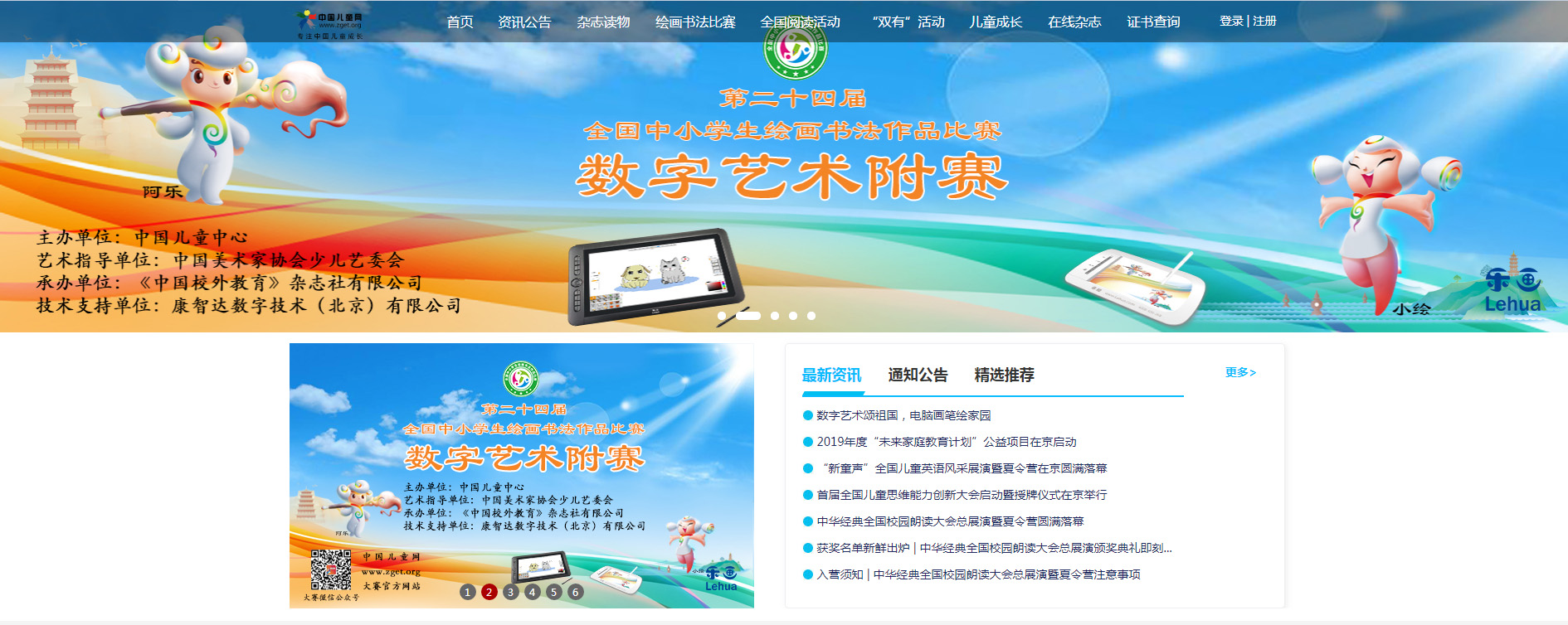 2019年8月9日,由中國兒童中心主辦、《中國校外教育》雜志社有限公司承辦的“第二十四屆全國中小學生書法繪畫作品比賽”頒獎活動在北京世界園藝博覽會媯汭劇場舉辦。
