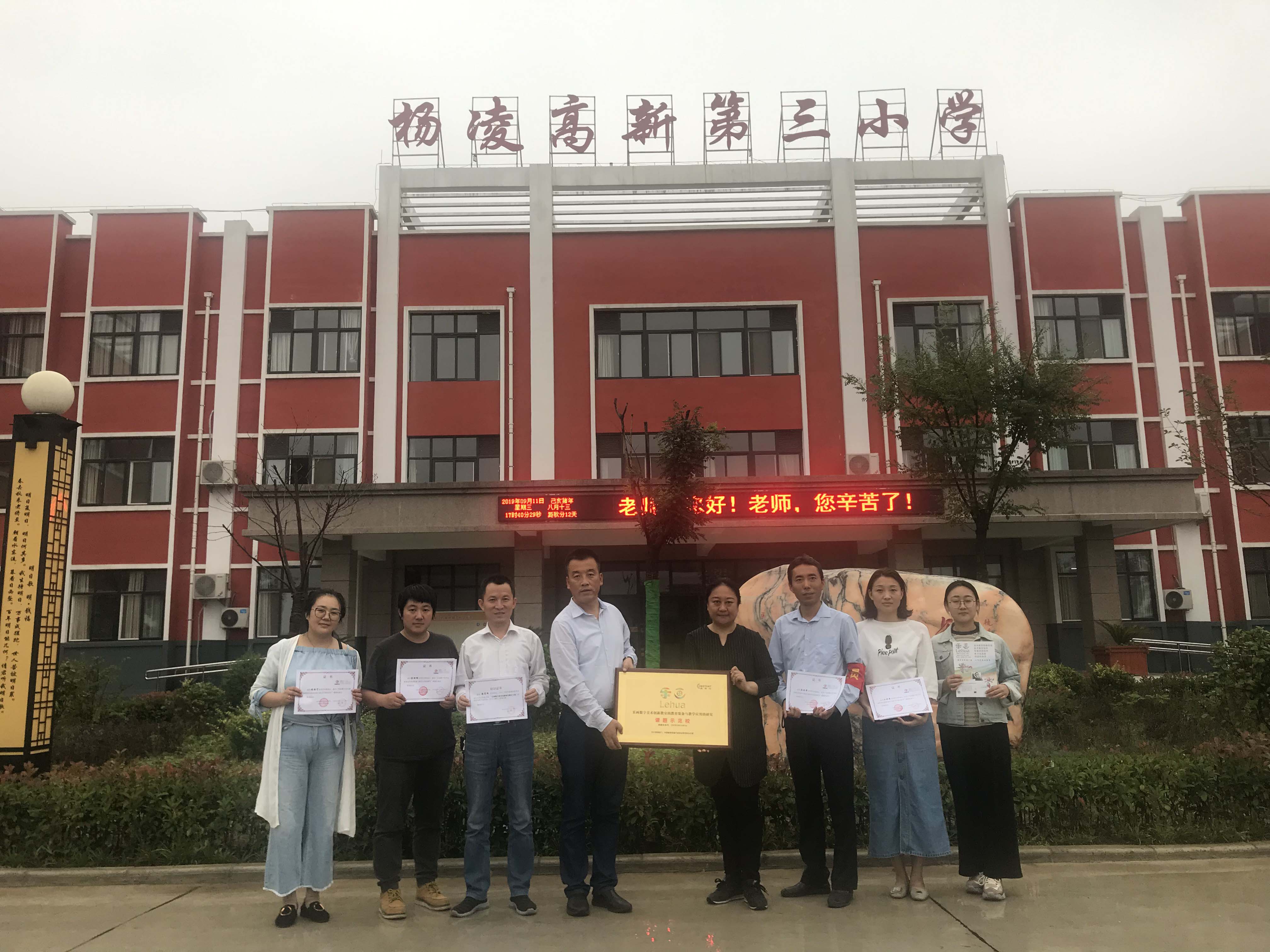 康智達公司總經理貢慶慶與楊凌高新第三小學校長強廣林和課題組老師合影