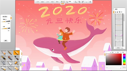祝賀大家元旦快樂、新年逐夢的圖就完成了,一起快樂繪畫吧!