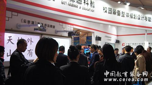 作為智慧教育裝備綜合解決方案生產(chǎn)商與集成商及國家高新技術企業(yè),在此次合作周中廣視通展示了實驗教學云終端、智慧書法教室等產(chǎn)品。廣視通自主研發(fā)的實驗教學云終端是第72屆中國教育裝備展示會金獎產(chǎn)品,是一款針對中小學實驗教學的信息化產(chǎn)品,以“平臺+終端+服務”為基礎研發(fā)理念,以中小學實驗在線為平臺支撐,整合海量優(yōu)質(zhì)資源,結合多媒體觸控一體機、平板、電腦、手機等多樣化終端,有效解決了實驗課程開課率不高,實驗裝備不完善,學生對科學實驗的興趣不高,實驗裝備的使用與維護不到位,等實驗教學和管理的疑點、難點、痛點等問題,有效提升了教學質(zhì)量。