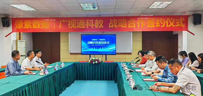 2025年3月27日下午,廣東廣視通科教設備有限公司(以下簡稱“廣視通”)與廣州像素數據技術股份有限公司(以下簡稱“像素數據”)戰(zhàn)略合作簽約儀式在廣視通總部二樓會議室舉行。像素數據董事長王端、廣視通董事長陳登貴等出席儀式。