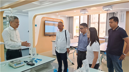 公司董事長(zhǎng)陳登貴熱情接待,對(duì)來訪團(tuán)隊(duì)表示熱烈歡迎,陪同考察了廣視通核心研發(fā)與展示平臺(tái),先后參觀了創(chuàng)新教育裝備體驗(yàn)中心科普教育基地、創(chuàng)新智慧實(shí)驗(yàn)室,并重點(diǎn)觀摩了實(shí)驗(yàn)教學(xué)與操作考評(píng)系統(tǒng)的實(shí)際應(yīng)用場(chǎng)景。通過實(shí)地體驗(yàn)智慧教室及教育大數(shù)據(jù)平臺(tái),讓來訪團(tuán)隊(duì)對(duì)廣視通在智慧教育領(lǐng)域的技術(shù)積累與行業(yè)實(shí)踐有了更直觀的認(rèn)識(shí),為后續(xù)合作提供了精準(zhǔn)切入點(diǎn)。