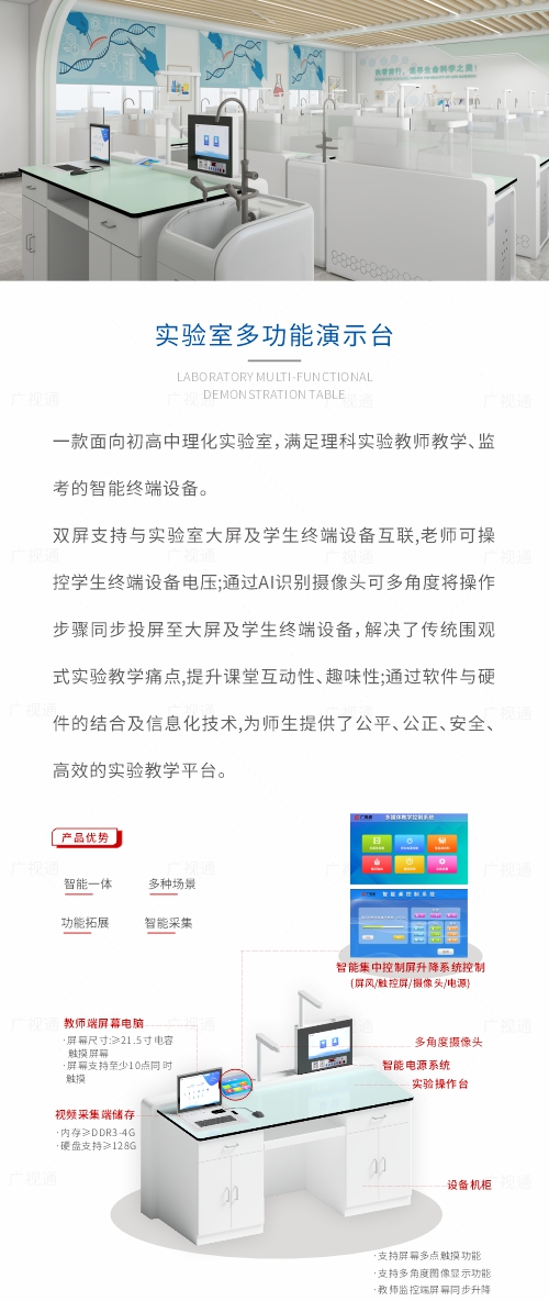 | 教育裝備數字化一站式解決方案,智能理化生實驗室、中考實驗操作考評系統、實驗仿真與教學系統、數字書法教學云系統、中學AI教考實驗室(升降式/便攜式智能終端)、頂裝/吊裝實驗室、探究實驗室、科學實驗室、人工智能科創實驗室、智慧書法教室、數字音樂教室、美術教室、數字地理教室、數字歷史教室、心理咨詢室、閱覽室、舞蹈室、陶藝室、烹飪教室、通用技術實驗室、勞動教育功能教室、科普探究等 |