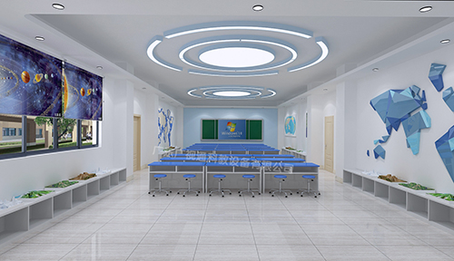 地理專用場室主要配有星象儀、典型的地形地貌、聲光電中國立體地形和世界立體地形、日月地運行儀、多功能演示柜、多媒體演示系統等設備。