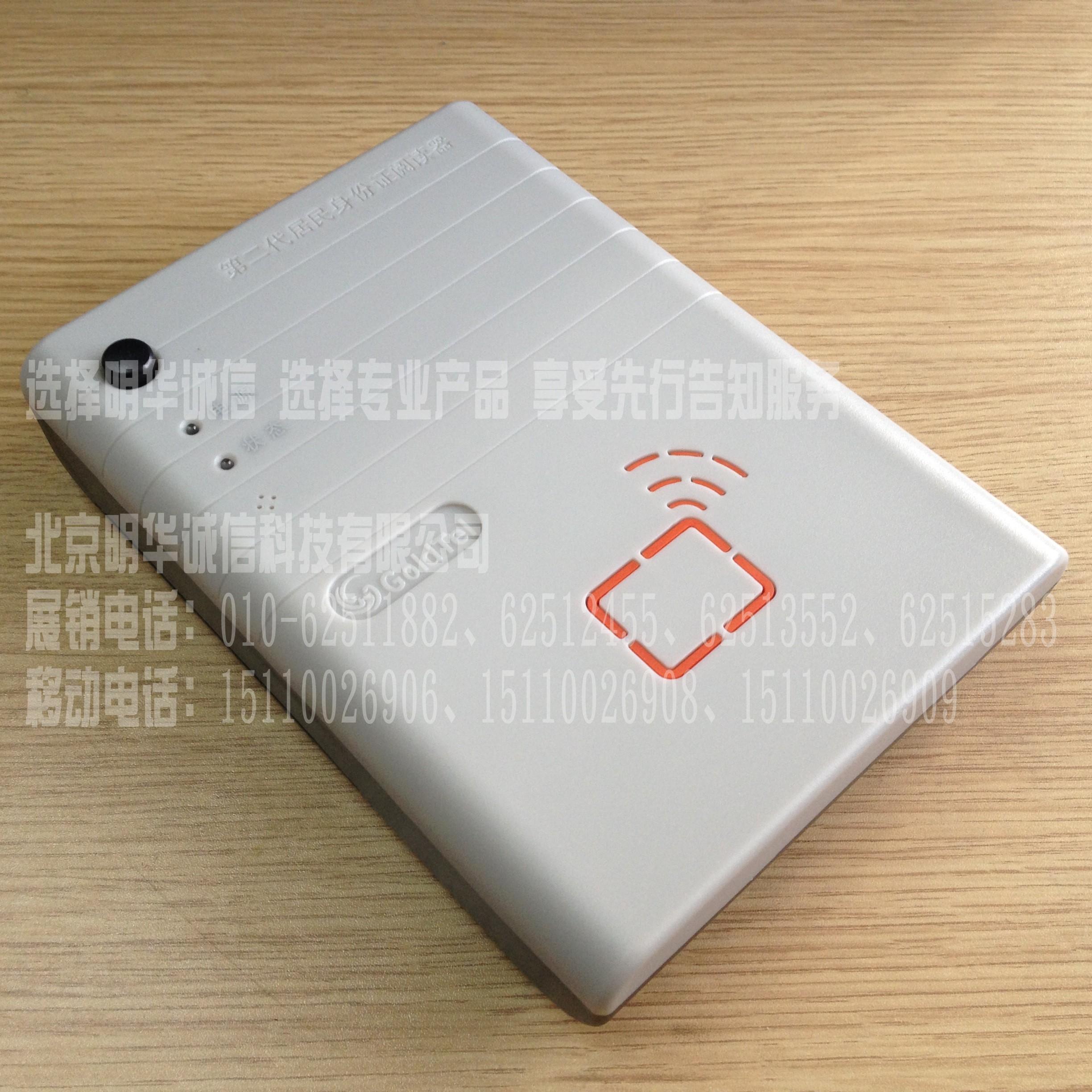 國騰GTICR100身份證讀卡器 一、產品概述 自2004年1月公安部發行二代身份證卡以來,我國將在2009年底完成全國性的換證工作。二代身份證同一代身份證最主要的區別是:一代證采用的是視讀加激光表面印刷防偽技術;而二代身份證必須是機讀,采用芯片、特殊的安全摸塊防偽技術及激光表面印刷防偽技術相的結合。隨著新的二代身份證的發行社會上出現了沒有芯片的假二代身份證,其印刷上和真的二代身份證基本接近,肉眼幾乎無法辨別真偽,因此要識別真假必須采用專門的二代證鑒別機具。北京明華誠信科技有限公司專業銷售的國騰GTICR100二代身份證閱讀器該款經公安部授權生產的二代身份證鑒別機具,對二代身份證的真假識別是維一可靠的,因此,根據公安部的要求,國內各大銀行、證券、保險、通信、郵政、公安、法院、公正處、機場、房產、教育等各用證單位必須配備二代身份證鑒別機具。 北京明華誠信科技有限公司是公安部指定的二代證鑒別儀生產廠家合作的授權銷售商。國騰GTICR100二代身份證閱讀器是北京明華誠信公司專為國家發行二代身份證而銷售的一款臺式身份證閱讀器,其內部擁有公安部專用的安全模塊和射頻讀寫模塊,在辨別第二代身份證真偽的同時可讀取第二代身份證芯片上所存儲的各項信息。
