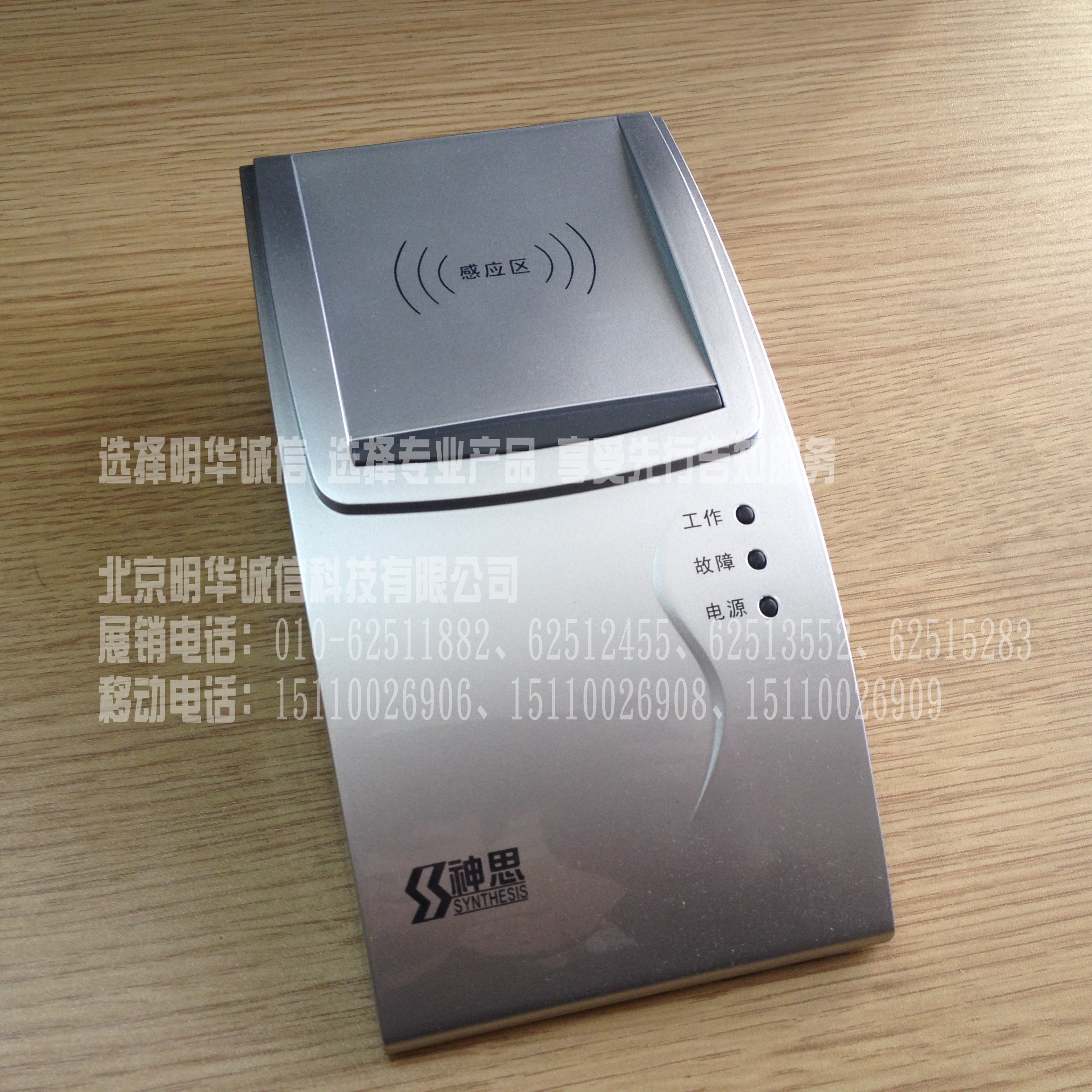 (1) 外形美觀、體積最小(射頻設備體積越小,設計制造技術越高)、重量輕;采用防磨噴涂技術,刷卡摩擦1萬次,不脫落; (2) 自帶蜂鳴器,讀卡后自動蜂鳴提示,無需計算機外加音箱提示; (3) 功耗低,可以通過USB接口取電工作,減少外接電源適配器; (4) 接口豐富:有USB、RS232C(缺省波特率115200bps)兩種通訊方式; (5) 任意角度讀卡:采用射頻磁場導向技術,0~90o都可讀卡; (6) 居民身份證閱讀距離大于5cm,無盲區,對四種芯片的身份證卡兼容性好; (7) 靈敏度好:從讀卡到顯示信息的時間小于1秒; (8) 工作狀態顯示:設備上有相應的電源指示和讀卡狀態指示; (9) 產品具有掉電、過流、過壓、短路等保護措施; (10) 可與專用接口設備實現無縫連接; (11) 通用性強:全面支持WINDOWS98以上版本的操作系統; (12) 開放性好:提供完善的SDK軟件包供系統集成商進行二次開發,支持VC/DELPHI/VB/PB等開發平臺。 二、產品圖片