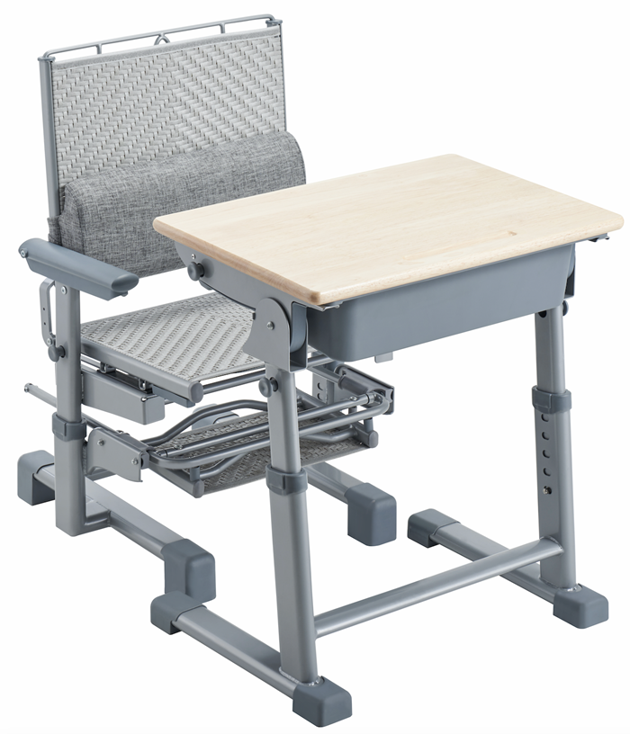 1、課桌規格:課桌桌面高度(640mm-790mm)±5mm,通過課桌兩側支撐臂上的按鍵升降調節裝置,可快速調節到學生個體適宜高度,符合課桌椅國標5號-0號標準,適用于小學到高中群體。