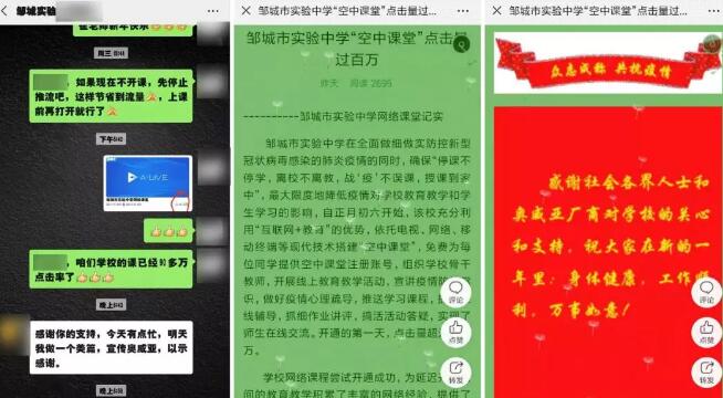 圖為:鄒城市實驗中學校方發布的網絡課堂紀實