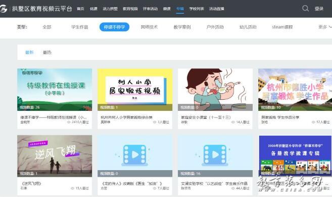 圖為奧威亞為杭州市拱墅區(qū)搭建的教育視頻云平臺頁面