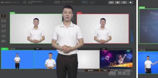 1、“前景一”和“前景二”的為摳像信號,在頁面布局定義為“K”,可選擇不同的拍攝角度;“實(shí)景攝像機(jī)”和“遠(yuǎn)程視頻”在頁面布局定義為“V”,布局有單屏、雙分屏、畫中畫等多種模式。