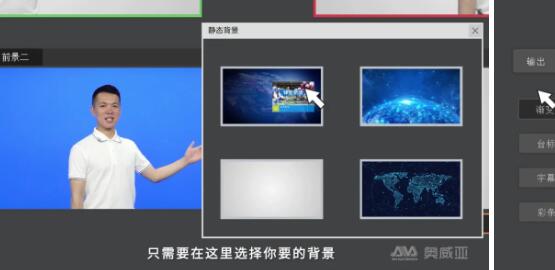 1、畫面背景點(diǎn)擊靜態(tài)選擇想要的背景圖-輸出(背景生成,畫面自動合成)