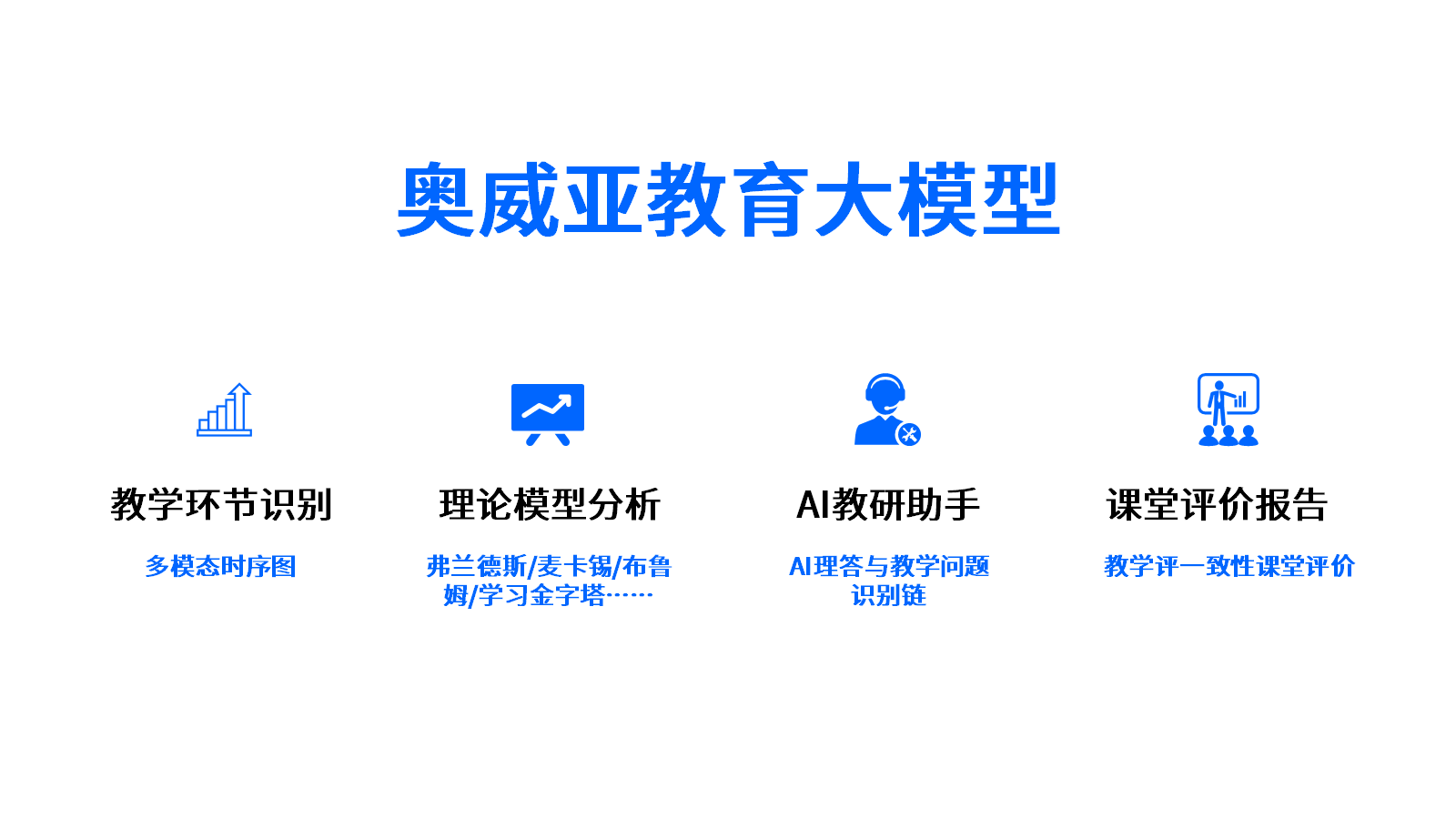 聚焦“數(shù)字化賦能教師發(fā)展成為常態(tài)”的目標(biāo),奧威亞全新推出“教育多模態(tài)分析模型”,通過(guò)構(gòu)建線下智慧教學(xué)空間與線上教師發(fā)展智慧平臺(tái),以AI技術(shù)為支撐,以多模態(tài)課堂數(shù)據(jù)為基礎(chǔ),以“AI教研助手”互動(dòng)應(yīng)用為載體,通過(guò)AI循證教研賦能青年教師教學(xué)能力提升,以及AI智能測(cè)評(píng)賦能教師隊(duì)伍專業(yè)發(fā)展,從而推動(dòng)高素質(zhì)專業(yè)化教師隊(duì)伍建設(shè),持續(xù)鞏固“雙減”成果,全面提升課堂教學(xué)水平。