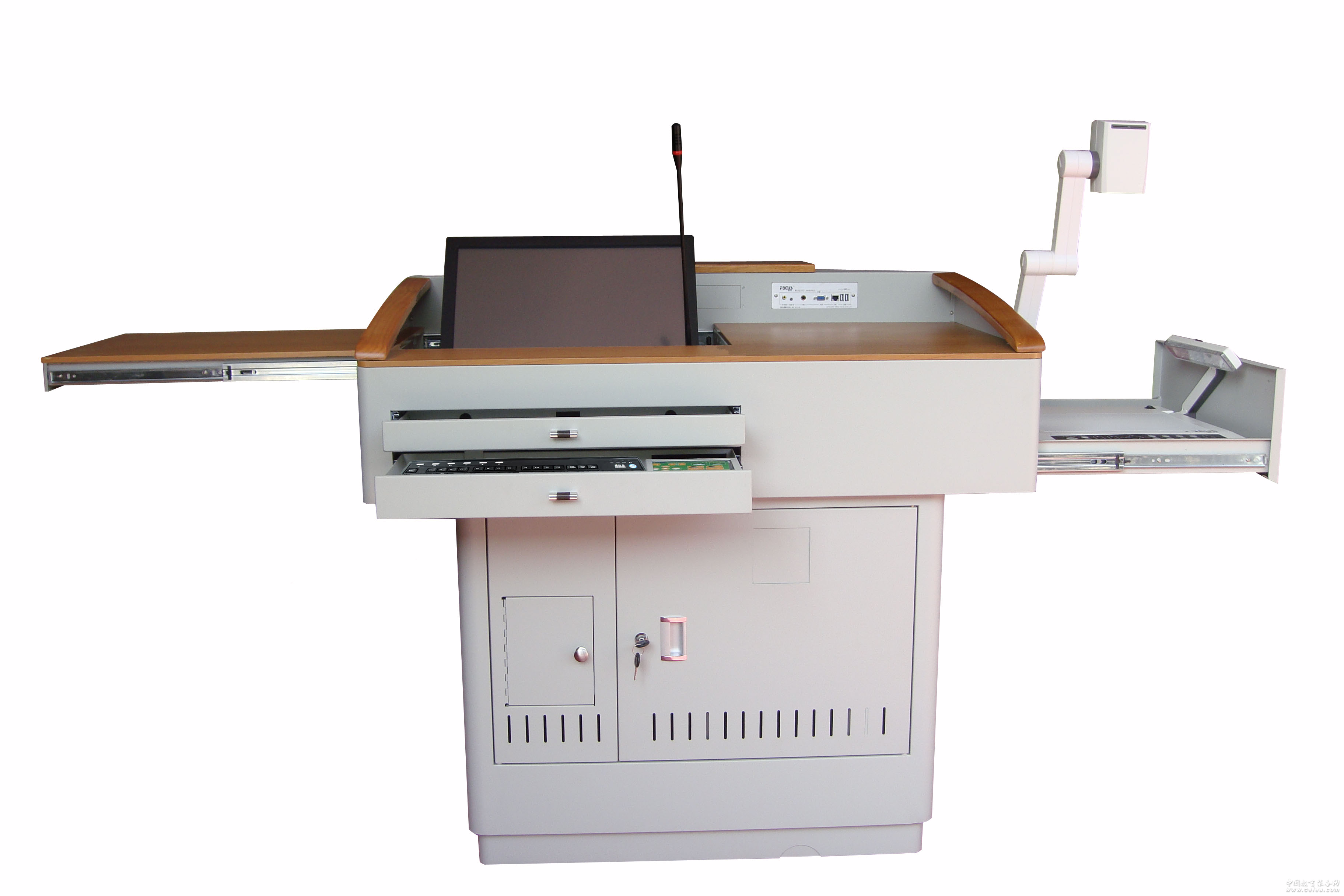 產品詳細介紹參數: 1、知識產權:數位講桌擁有自主知識產品,獲得外觀設計專利認證,專利號:ZL 2008 3 0039389.6 2、講桌設計:采用分體式設計,桌面部分和桌體部分自成一體,外置固定螺絲孔位,安裝簡單,方便進出設計比較窄的教室門。獨立包裝,運輸輕便。 2、講桌構成:鋼木結合,桌面為防火板,防火、防塵、防水、耐刮花。LOGO裝飾板及扶手為海南橡木,高檔美觀,實用。 3、講桌材料:講桌主體采用1.5mm冷軋鋼板,其它部分采用1.2mm冷軋鋼板。 4、講桌尺寸:關閉時,長寬高(110*80*100)CM;展開時,長寬高(200*105*100 )CM。 5、人性化:無棱角,桌體拐角采用圓弧設計,防止碰傷。提供實木扶手,方便老師扶握。 6、高度集成:講桌內部可擴充IC卡系統,可內置專業鵝頸話筒一只,兩只30W的多媒體無源音箱,可擴充防盜報警系統,可擴充四只輪子,方便移動。 7、詳細配置: (1)、講桌配氣動輔助升降桿或者電動升降機,可裝15寸、17寸、19寸、21.5寸液晶顯示器。 (2)、講桌配隱藏式滑軌抽拉抽屜,可容納鍵盤、中控控制面板。鍵盤架下方為儲物抽屜,可以放置書本,粉筆,粉擦等。 (3)、講桌桌體采用開合式小柜門設計,不必打開桌子柜門,即可經由計算機光驅播放光碟。 (4)、講桌左側具推拉式輔助臺板,可放置筆記型計算機,承重8公斤。 (5)、講桌右側具有抽拉式抽屜,可放置實物展示臺,承重10公斤。 (6)、講桌桌子內部采用機柜式標準設計,帶隔板,中控及功放等設備可以固定安裝起來,其他設備可放在隔板上面,所有設備擺放整齊、美觀。 8、高檔紙箱包裝,抗摔,防壓。 |
