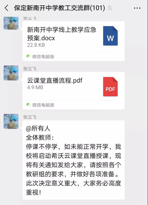 疫情爆發后,匯文安豐中學校領導立即著手開展網絡課堂準備工作,并通知全校每一位教師和學生,號召全校師生積極防控疫情,共度特殊時期。