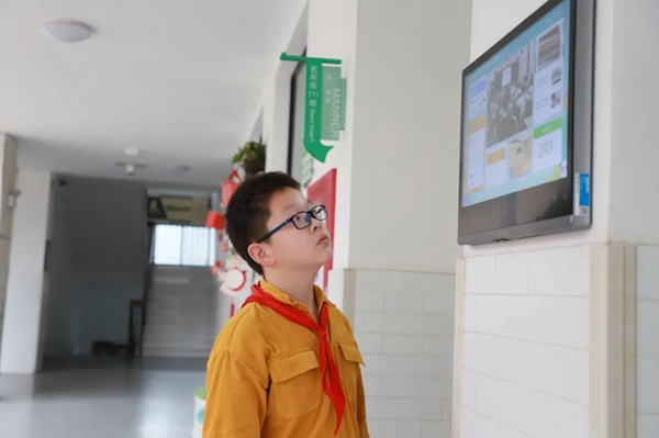 好奇心旺盛的孩子,需要了解校園內的方方面面,也要看看外面的世界。信息中心的張老師表示,“以前校園資訊只發布在公眾號、官網上,學生了解不到。一些實時性的新聞熱點,也只能是老師在課堂上傳達給學生,學生缺少了看世界的窗口。現在有了班牌,校園資訊、時事熱點都能放上去,大家都感到好奇、新鮮,能提高學生們的知識面與榮譽感。在疫情期間,學校也會借助希沃云屏會插播一些衛生健康類的內容,給學生普及防疫小知識,讓其養成良好的衛生習慣。”