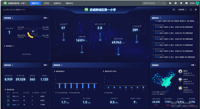作為甘肅省評定的“智慧教育標桿校”,武威新城區(qū)第一小學一直以教育信息化作為提升辦學水平的突破口,著力打造現(xiàn)代化學校,始終緊握新時代現(xiàn)代化教育機遇,致力于改善辦學條件。學校搭建了校園網(wǎng)絡(luò),通過加強信息化應用培訓,教職工利用信息平臺或信息化工具開展教育科研、班級管理、網(wǎng)絡(luò)培訓、讀書分享、宣傳教育、家校互動等工作,大大提高了工作效率。