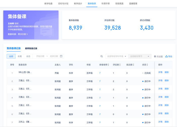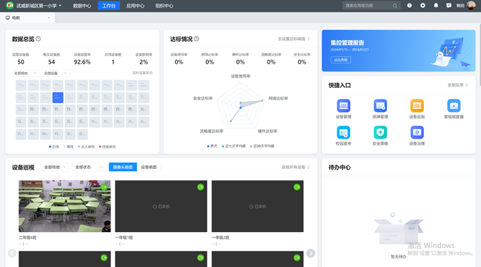 現(xiàn)在學校通過希沃魔方設(shè)備運維,工作臺即可一覽學校設(shè)備使用情況,線上巡課高效、便捷;一旦發(fā)現(xiàn)設(shè)備出現(xiàn)問題無須到達現(xiàn)場即可遠程控制修護,發(fā)現(xiàn)學生違紀問題時,亦可及時編輯信息警示學生,同時支持手機巡課,在不影響正常教學的情況下,大大提升了教務部門的工作效率,嚴格把控課堂質(zhì)量。