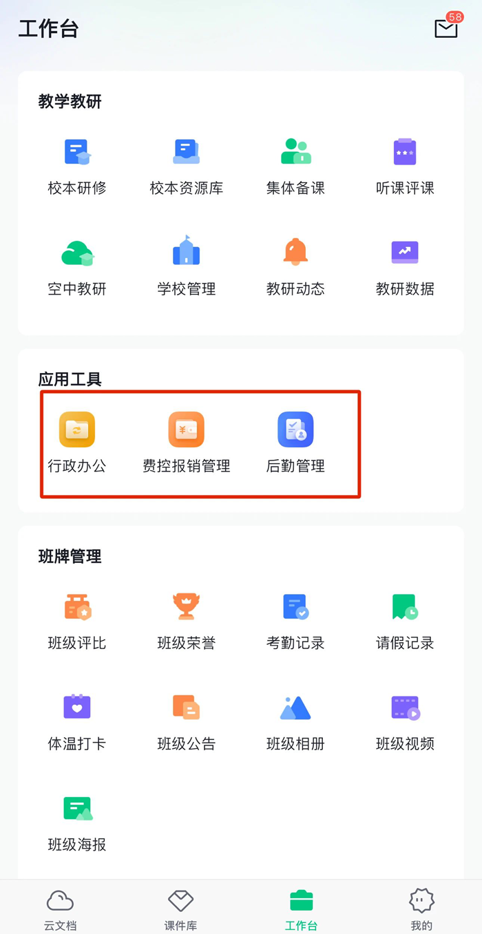 應用融合,構建數據互聯網絡:將OA辦公系統融合進數字基座,實現數據的互聯互通。教師及管理者便可通過希沃魔方平臺進行OA辦公流程的使用,同時也嵌入在希沃白板APP端,便于手機端使用與消息提醒。
