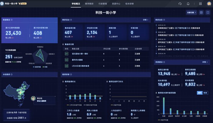 而在希沃魔方賦能下所搭建的教研數(shù)字化平臺(tái),2.3萬(wàn)余份云課件教案、1萬(wàn)余份校本資源、400多次校本研修活動(dòng)形成龐大的“校本資源數(shù)字資產(chǎn)庫(kù)”,不斷滿足教師們的教學(xué)需求。研修活動(dòng)產(chǎn)生的一份份客觀數(shù)據(jù)成為教師專業(yè)成長(zhǎng)的“刻度尺”,數(shù)據(jù)客觀呈現(xiàn),助力學(xué)校精準(zhǔn)把握教學(xué)動(dòng)態(tài),為教學(xué)決策提供有力支撐。