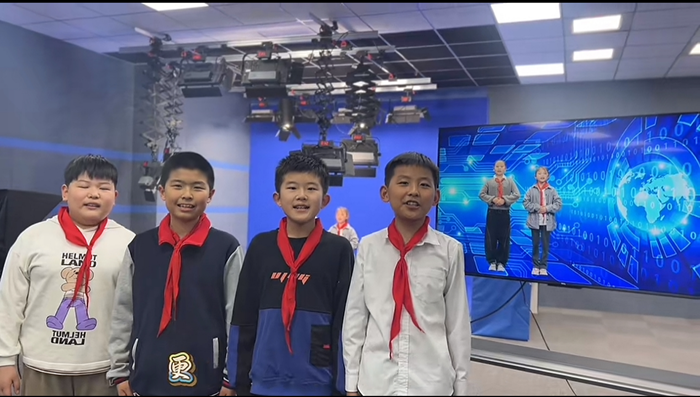 藍(lán)絲帶融媒小記者正在“美達(dá)光影空間”錄制最新一期《數(shù)字校園體驗(yàn)官》。