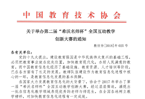 因此,為了更好地幫助教師隊(duì)伍的建設(shè),聚集更多信息化教學(xué)教師楷模,發(fā)揮標(biāo)桿作用,搭建更豐富多樣的教育資源展示與共享的平臺(tái),同時(shí)為更好地貫徹《教育信息化“十三五”規(guī)劃》精神,從師范生的培養(yǎng)開(kāi)始,加強(qiáng)信息化教學(xué)理念的深入,結(jié)合信息化企業(yè)提供的信息化教學(xué)應(yīng)用技術(shù),全面提高師范生的綜合素質(zhì),中國(guó)教育技術(shù)協(xié)會(huì)已在2018年4月17日在全國(guó)范圍內(nèi)開(kāi)展第二屆“希沃名師杯”全國(guó)互動(dòng)教學(xué)創(chuàng)新大賽。