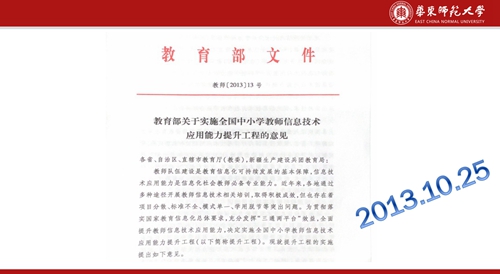 2004年有相關(guān)的教師教育技術(shù)能力與建設(shè)的規(guī)定,到了2013年又有新的有關(guān)于新技術(shù)應(yīng)用能力相關(guān)的政策(《教育部關(guān)于實(shí)施全國中小學(xué)教師信息技術(shù)應(yīng)用能力提升工程的意見》),我們圍繞這個(gè)政策,對(duì)教師信息技術(shù)應(yīng)用能力開展了標(biāo)準(zhǔn)的研制、課程的設(shè)計(jì)。