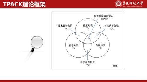 對(duì)于我們教師技術(shù)的整合能力來說,我們也可以參考一下TPACK框架。全稱是Technological Pedagogical and Content