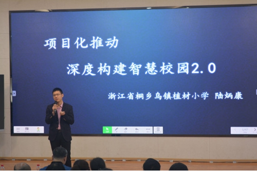隨后,針對智慧校園建設(shè)和應(yīng)用,浙江省桐鄉(xiāng)市烏鎮(zhèn)植材小學(xué)陸炳康副校長分享了《項目化推動,深度構(gòu)建智慧校園》主題報告,為區(qū)域未來學(xué)校共同體成員學(xué)校、區(qū)數(shù)字校園及智慧學(xué)校試點學(xué)校提供了可借鑒的案例。