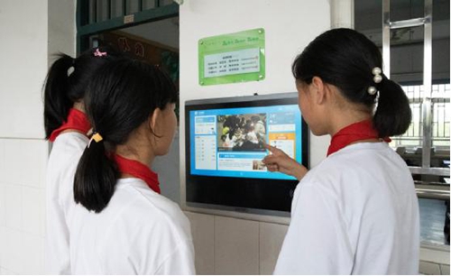 如今,每個(gè)班級(jí)門口的班牌成為植材小學(xué)一道亮麗的風(fēng)景線。上一秒,老師拍下學(xué)生的優(yōu)秀課堂作業(yè),下一秒,作業(yè)照片就傳上了班牌。開會(huì)時(shí),通知一鍵發(fā)送,每個(gè)班的學(xué)生就知道今天下午3點(diǎn)要開年級(jí)會(huì)議。傳達(dá)之間,既實(shí)現(xiàn)了傳統(tǒng)條件下的宣傳目的,又保證了信息傳遞的時(shí)效性。