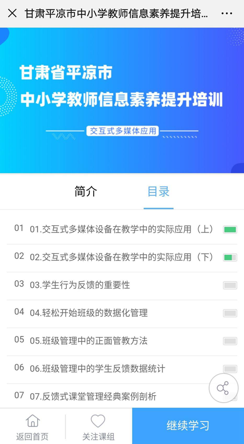 7月1日-7日,7個區縣的線上培訓相繼啟動。針對此次培訓,希沃團隊特開設“甘肅省平涼市中小學教師信息素養提升培訓”專區,精選了36節獨具針對性與實用性的信息化教學課程,確保培訓效果和培訓目標的達成。