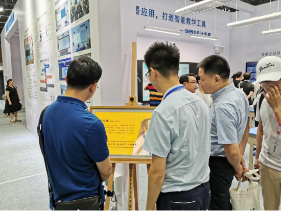 希沃畫屏用畫框的外觀設(shè)計風格,畫質(zhì)清晰、設(shè)計精美,產(chǎn)品充滿藝術(shù)氣息,襯托出學校的文化氛圍。對于畫屏的“高顏值”、“高性能”,觀展人士一致表示認可。