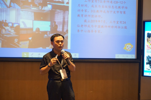 13日上午,希沃教育研究院的胡婷玉院長首先做了《名師工作室政策解讀》的專題報(bào)告。其從國家政策的角度去闡述組建名師工作室必要性及其發(fā)展方向,并提出了“示范、引領(lǐng)、指導(dǎo)、輻射”四大職能,提到名師工作室是區(qū)域教師信息化成長的有力推手。