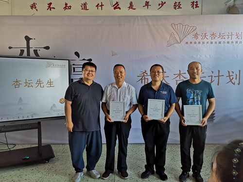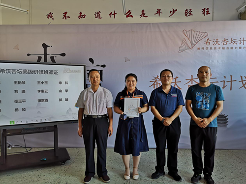 最后由希沃公司教師發展顧問和希沃銷售經理共同為教育局趙局和電教館的付主任,孫老師頒發了全國第一批杏壇先生榮譽證書。