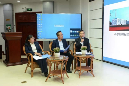 在汽開區(qū)進(jìn)修學(xué)校趙越副校長的主持下,校長團隊展示了“聚焦整校推進(jìn)尋求破解之道”主題論壇。第九中學(xué)李旦峰校長分享了立足于頂層設(shè)計,破解了2.0提升工程與學(xué)校整體規(guī)劃如何有機結(jié)合的問題;第七小學(xué)鐘梅校長、第十二小學(xué)王安巍校長分別從研修模式重構(gòu)、研修方式重塑兩個維度談如何將2.0提升工程工程的實施與校本研修融合為一體的思考與策略;實驗學(xué)校周國兵校長、第一中學(xué)尤君志校長分享了基于學(xué)校教師隊伍年齡偏大,如何破解老教師參與到2.0提升工程與技術(shù)應(yīng)用的問題。其中均提到希沃對于學(xué)校信息化建設(shè)。