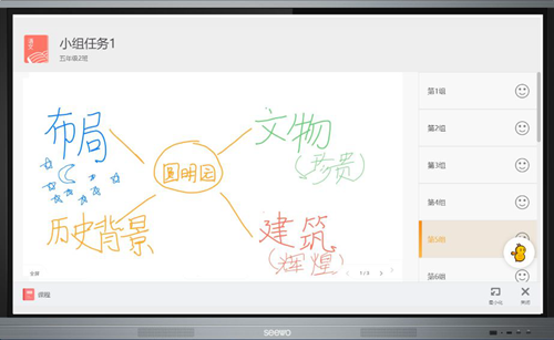 通過希沃易課堂小組協(xié)作模式,如在《圓明園的毀滅》這堂語文課中,老師的預(yù)設(shè)也許如下圖所示,但學(xué)生討論的結(jié)果顯然更豐富。小組協(xié)作的模式讓老師清晰地看到每一個(gè)組員的協(xié)作操作過程,并直觀查看組員討論結(jié)果,發(fā)現(xiàn)每一個(gè)學(xué)生身上更多可能和閃光點(diǎn)。