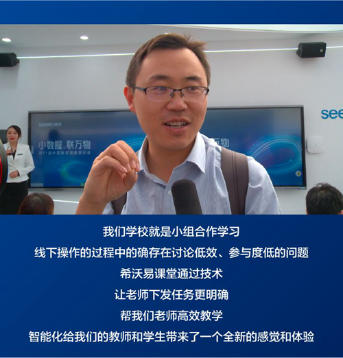 一位老師在體驗(yàn)了希沃易課堂小組合作學(xué)習(xí)任務(wù)后講道:“我們學(xué)校就是小組合作學(xué)習(xí),線下操作的過程中的確存在討論低效、參與度低的問題。這次來展會(huì),就想體驗(yàn)下小組合作學(xué)習(xí)。希沃易課堂通過技術(shù),讓老師下發(fā)任務(wù)更明確,幫我們老師高效教學(xué),智能化給我們的教師和學(xué)生帶來了一個(gè)全新的感覺和體驗(yàn)。”