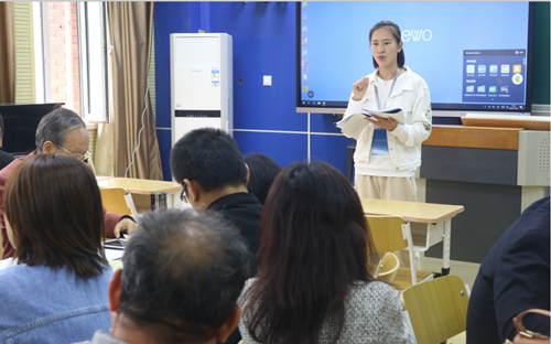 其中郅雪靜老師的生物課《在實驗室里觀察植物》令許多參會教師印象深刻。郅老師通過使用希沃易課堂的互動功能,讓學生們體會“要謹慎對待常識,用科學的依據來作判斷”的道理。郅老師在課后與參會教師們分享她的個人體會:“學生們是互聯網的原住民,信息化素養是很高的,可以在第一節課就熟練使用平板上課,反過來,這也激發了學生的‘課堂生成性’。”