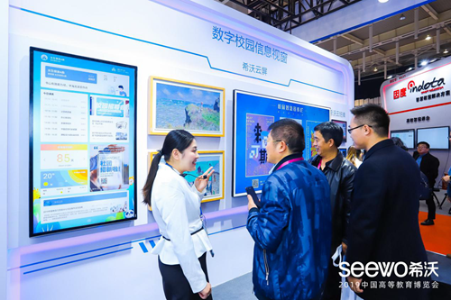 以科技賦能高等教育現代化建設,希沃攜研討型教室、智慧教室、校園文化長廊等全新場景方案驚艷亮相,立即獲得各教育局領導、高校老師、渠道合作伙伴、權威媒體的廣泛關注。