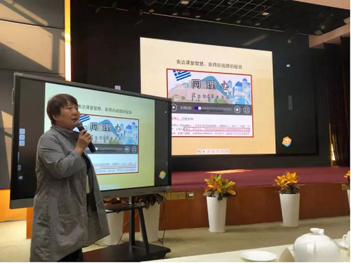 “各位老師,視頻中這些看似神奇的操作,大家可能覺得需要5分鐘來制作,這是利用希沃自帶的小工具制作的,只需要2秒。但這2秒能提升課堂互動性,激發學生的積極性,活躍課堂氛圍,讓學生在玩中學習。”希沃研究院袁晶老師,為學員們做了《交互式多媒體技術在教學中的應用》的培訓,分析了全國賽獲獎作品案例中使用的信息化技術,并針對各個學科的不同情況,對希沃白板5與班級優化大師等在教學中的應用進行了較為細致的介紹。