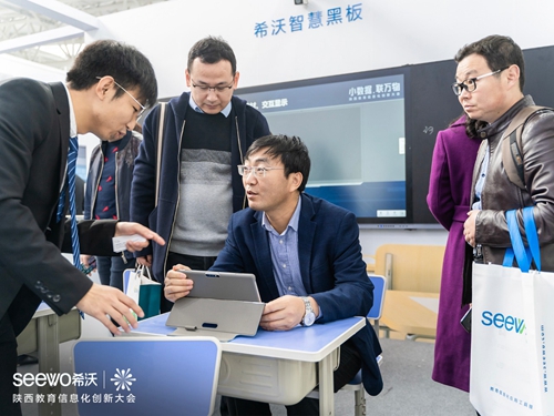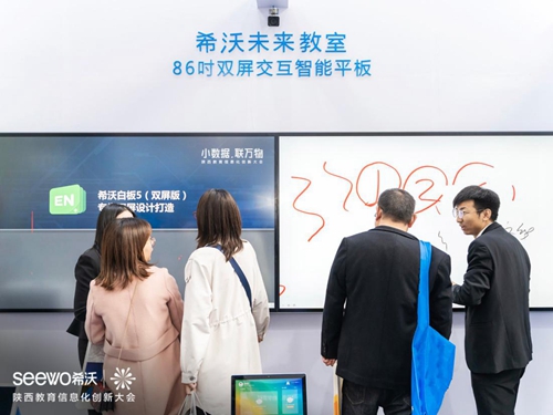 此次展會現(xiàn)場,希沃新品“雙屏電容交互智能平板”也是首次在陜西亮相,憑借雙屏一體、全屏貼合和未來風向標業(yè)界獨創(chuàng)的隱形縫隙發(fā)聲等亮點,吸引了大批量領導老師體驗。