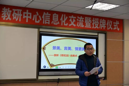 職教中心副主任、副校長李主任在儀式上,以“搭建校企合作教研交流平臺,提升信息技術教學融合能力”為題發表了總結講話。