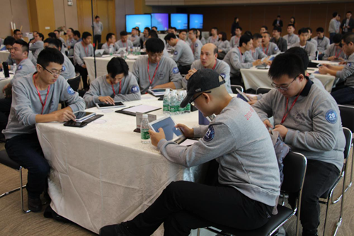 第一關——巔峰競答環(huán)節(jié),包含必答題與搶答題。面對必答題,從八大區(qū)域選出的“高手們”成竹在胸,輕松自如地一口氣選出心中答案。輪到搶答環(huán)節(jié),現(xiàn)場緊張氣氛急速上升,工程師們屏住呼吸,緊盯住面前的希沃學生平板,眼疾心明手快地“解鎖”難題。